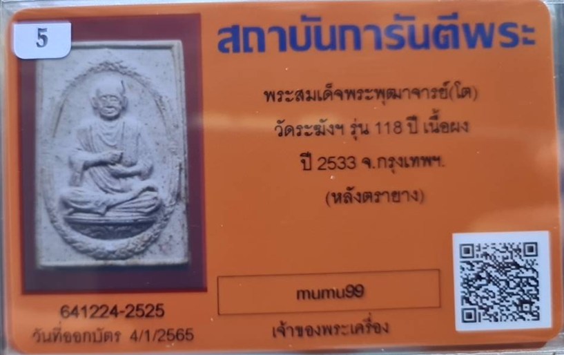 ## สมเด็จวัดระฆัง อนุสรณ์ 118ปี พ.ศ.2533 พิมพ์รูปเหมือน "พระสวยเดิมไม่ผ่านการใช้.หลังปั้มตรายาง...พร้อมบัตรรับรอง.""รับประกันแท้ตลอดฃีพและแท้ตามมาตรฐานสากล....... อนาคตดี ถูกๆเลยครับ.... ราคายังไม่แรง....ไปออกต่อได้เลยครับ...แท้...ถูก...ดี...น่าเก็บมาก..