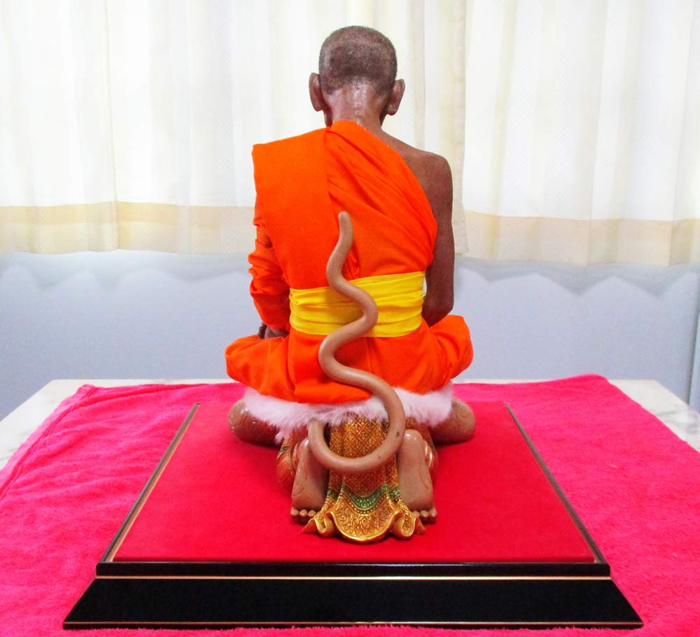 พระบูชารูปเหมือนหลวงพ่อพูล วัดไผ่ล้อม จ.นครปฐม พ.ศ.2547 ประทับนั่งเหนือเทพหนุมานครองเมือง เนื้อไฟเบอร์กลาสห่มจีวรรุ่นแรก หน้าตัก 9 นิ้ว พร้อมครอบกระจก !!