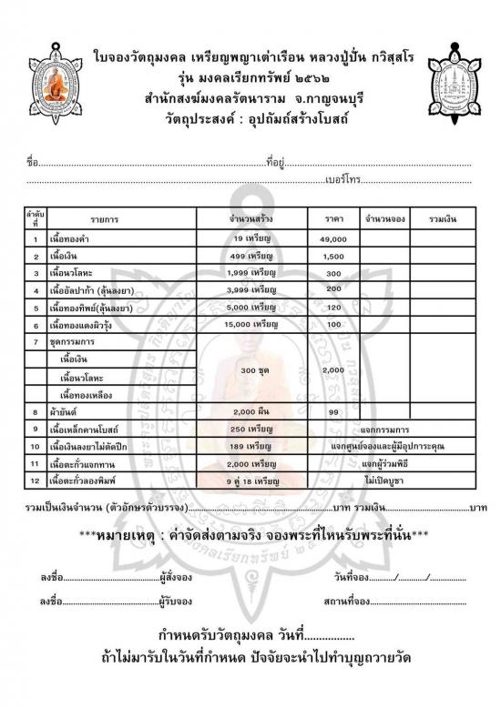 พญาเต่าเรือน มงคลเรียกทรัพย์ หลวงปู่ปั่น ปี2562 เนื้อเงิน หมายเลข477 ตามรูป