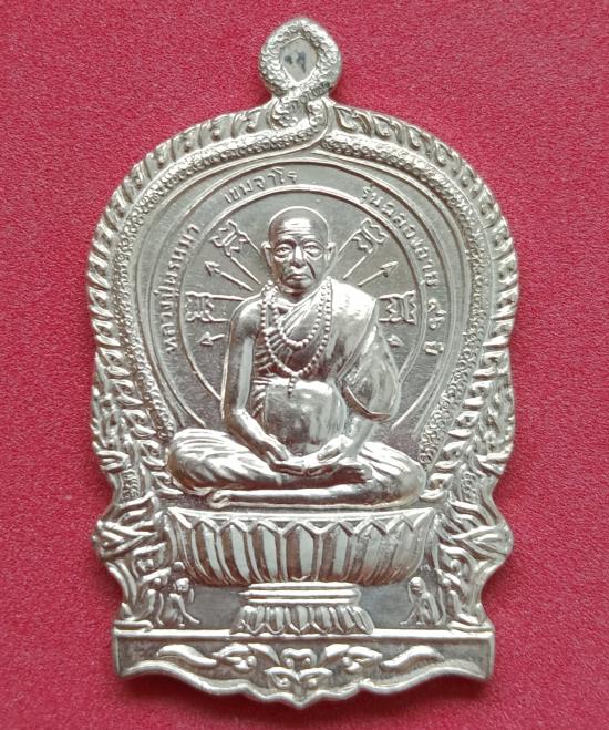 เหรียญนั่งพาน เนื้อเงิน หลวงปู่พรหมมา เขมจาโร รุ่นฉลองอายุ๙๖ปี รวมใจ เสาร์ห้า ปี2537 ตอกโค๊ดและหมายเลขกำกับ ตามรูป