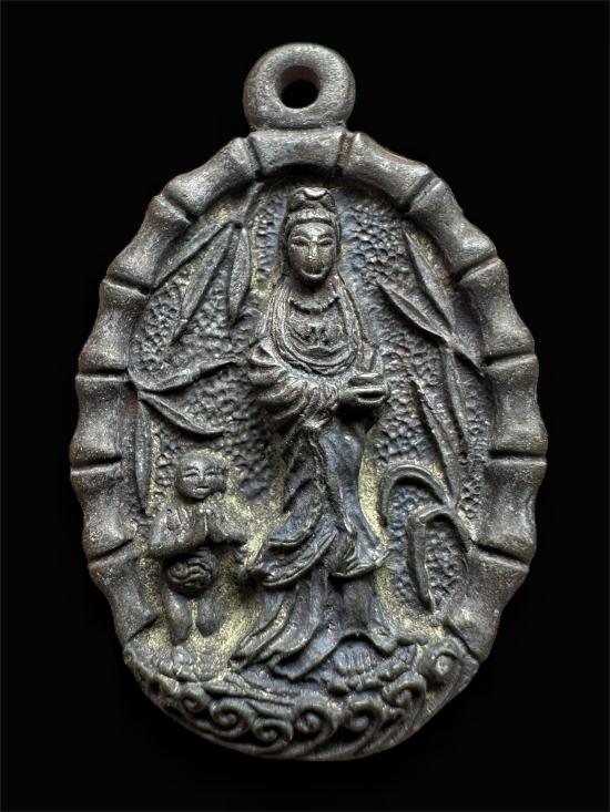 เหรียญพระโพธิสัตว์เจ้าแม่กวนอิม วัดซับไม้แดง จ. เพชรบูรณ์ ปี 2518 เนื้อนวะ
