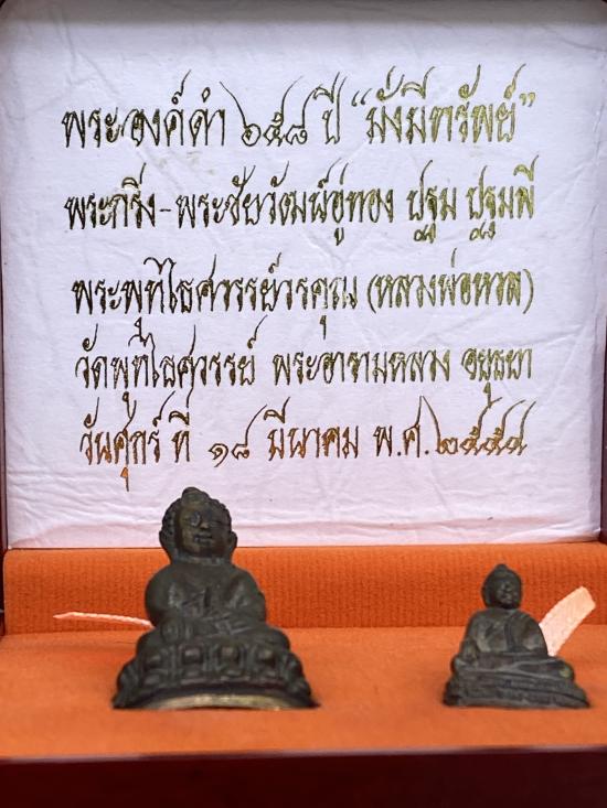 พระกริ่ง พระชัยวัฒน์ อู่ทอง พระพุทไธศวรรย์วรคุณ ( หลวงพ่อหวล) วัดพุทไธศวรรย์ อยุธยา ปี 2558 ชุดนำฤกษ์ เนื้อ นวะครบสูตร ดินไทย สร้าง 999 ชุด เลข 493 ทั้ง 2 องค์