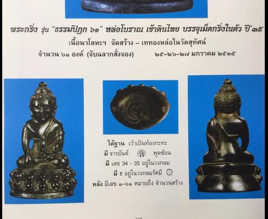 📌ประกอบพิธีเททอง-พุทธาภิเษก วัดสุทัศน์-วัดบางคลาน ปี2534-2535 สร้างในวาระที่พระเดชพระคุณพระธรรมปิฎกท่านเจ้าอาวาสวัดสุทัศน์ฯ ชนมายุครบ 61 ปี