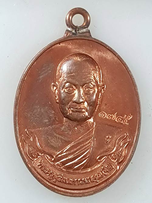 ::(เหรียญบารมีห่วงเชื่อม ๗๒ ปี (รุ่นแรก) ครบ 6 รอบ อายุ 72 ปี หลวงปู่จื่อ พันธฺมุตโต:: ::(เนื้อทองแดงผิวไฟ หมายเลข 1745 พร้อมกล่อง)::