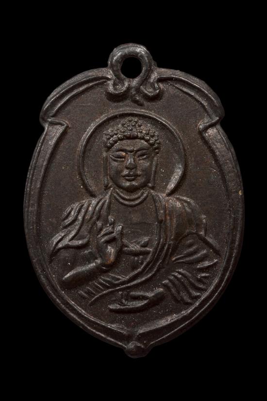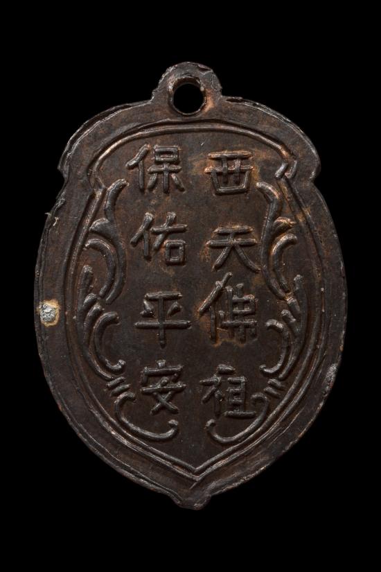 เหรียญปั๊มพระยูไล วัดเล่งเน่ยยี่ รุ่นแรกพิมพ์ลูกท้อยอดนิยมปีพ.ศ.2493 เนื้อทองแดงรมดำสวยๆ