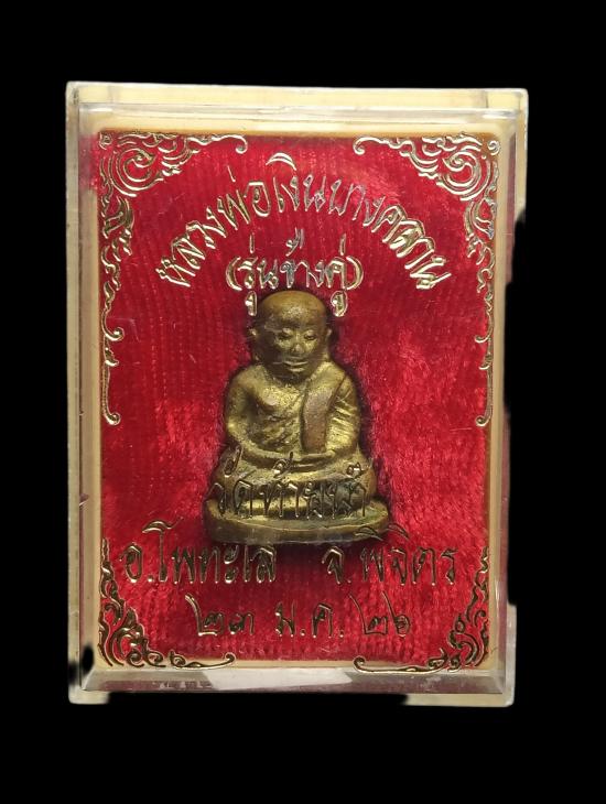 รูปเหมือนหลวงพ่อเงิน วัดบางคลาน รุ่นช้างคู่ พิมพ์ใหญ่ เนื้อทองเหลือง ปี2526 จ.พิจิตร (วัดท้ายน้ำสร้าง) พร้อมบัตรรับรอง