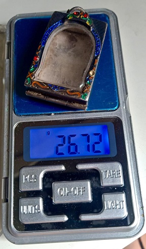 ****วัดใจ****ตลับเงินลงยาปิดหลังงานเก่า ใส่พระสมเด็จ งานขึ้นมือ น้ำหนัก 26.72 กรัม (ไม่มีหมุดล็อค)
