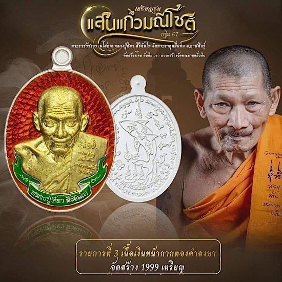 เหรียญหลวงปู่มหาศิลา รุ่น เเสนแก้วมณีโชติ เนื้อเงินยาแดงหน้าทอง จมูกโด่ง100% กล่องเดิม เลข458 สภาพสวยแชมป์ๆ