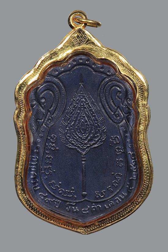 เหรียญเสมาหลังพัดยศหลวงปู่โต๊ะ วัดประดู่ฉิมพลี กรุงเทพฯ เนื้อทองแดงรมดำ ปี 2518 พิมพ์นิยมโบว์มีดาว เลี่ยมทองตลาดพร้อมใช้ครับ