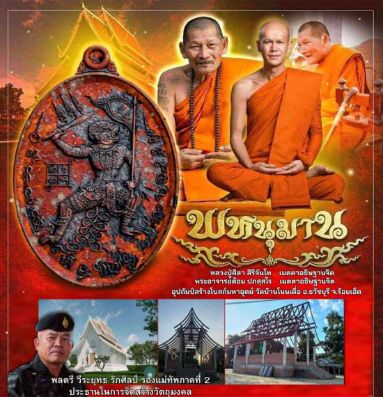 หรียญพหูรมาน รุ่น พหนุมาน สร้างโบสถ์มหาอุตม์ ณ วัดบ้านโนนเดื่อ จ.ร้อยเอ็ดเมตตาอธิษฐานจิตปลุกเสกโดย หลวงปู่ศิลา สิริจันโท พระอาจารย์ต้อม ปภสฺสโร เนื้อทองแดง เถื่อน เลข 1330 กล่องเดิม