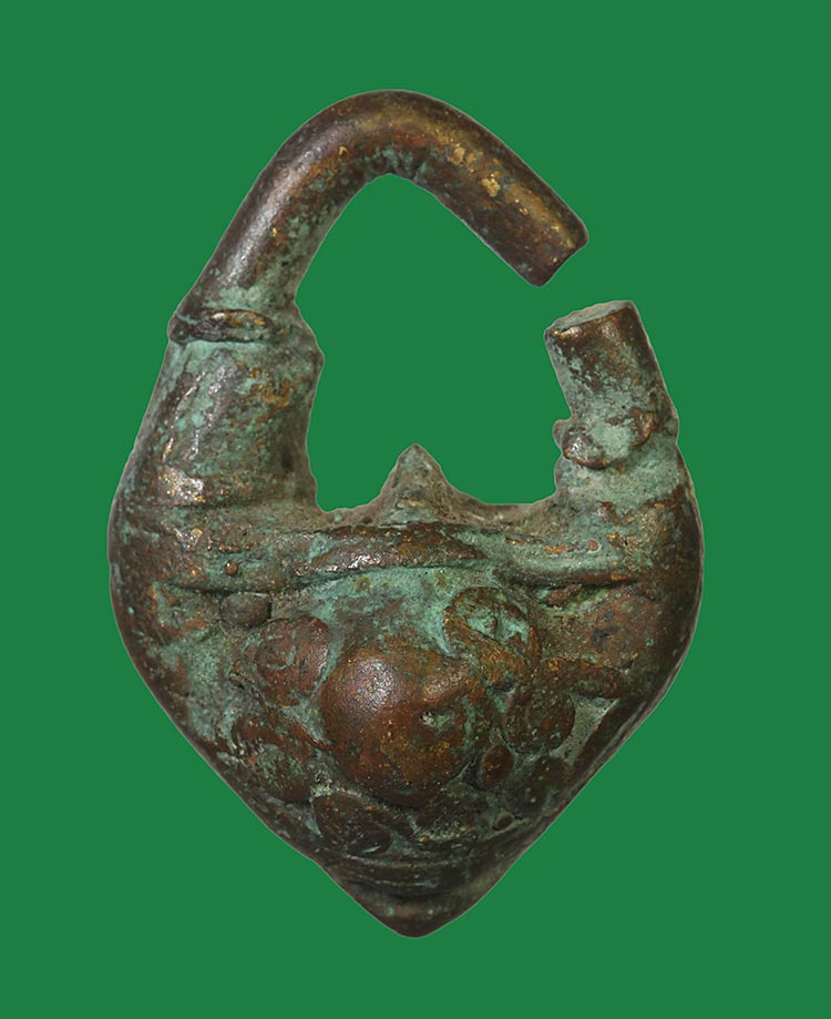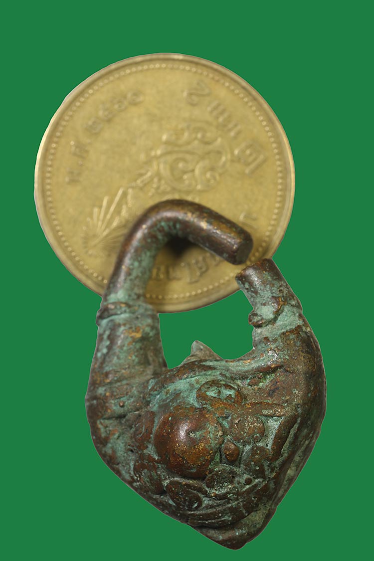 วัดใจ**เครื่องราง ตุ้มหูโบราณเนื้อสำริดเก่า....ตามสภาพครับ |