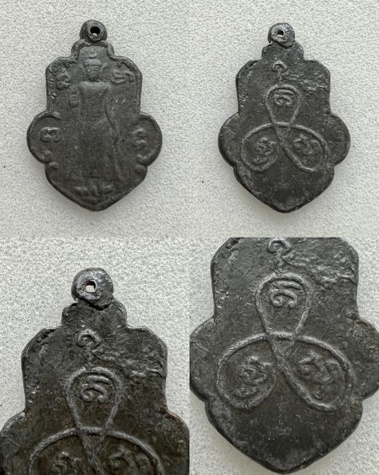 เหรียญหลวงพ่อธรรมจักร วัดเขาธรรมมูล พิมพ์คอน้ำเต้า หลังยันต์สาม เนื้อชินตะกั่ว ปี 2461 จ.ชัยนาท หลวงปู่ศุข ปลุกเสก |