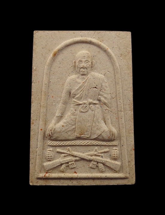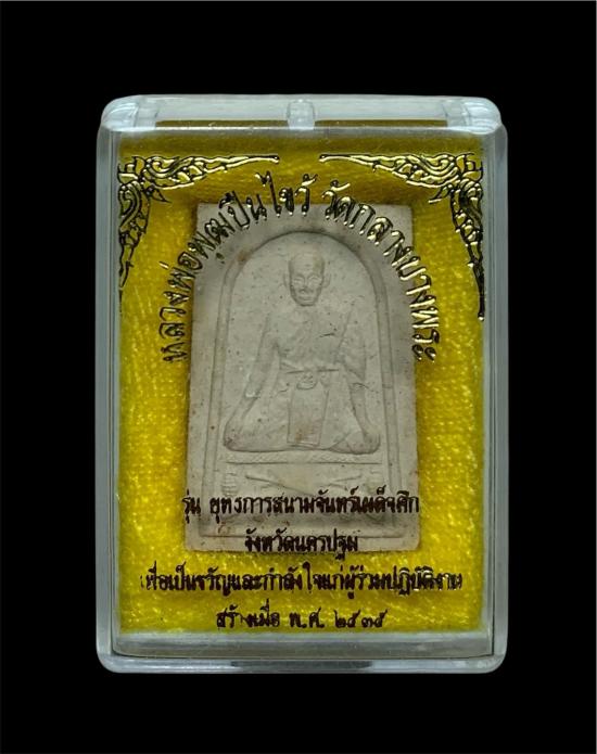 วัดใจ พระผงรูปเหมือน ปืนไขว้ หลวงพ่อพุฒ วัดกลางบางพระ จ.นครปฐม ปี35 |
