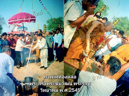 **พิธีเททองหล่อพระกริ่งพระชัยวัฒน์ : หลวงพ่อคูณเมตตาเป็นองค์ประธานเททองปฐมฤกษ์ ณ วัดมะระ วันที่ 22 มีนาคม พ.ศ.2545 เวลา 9:00 น.