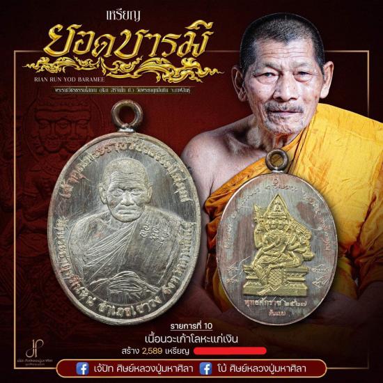 หลวงปู่มหาศิลา เหรียญ ไหว้ครูปี2567 รุ่น ยอดบารมี เนื้อนวะเก้าแก่เงิน เลขสวย243 ใบฝอย กล่องครบ