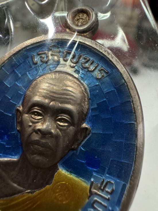 เหรียญเจริญพรบน92 ปี2557 เนื้อเงิน ลงยาสีฟ้า no.2 ไม่มีกล่อง