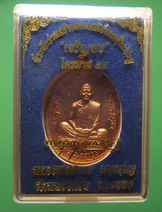 เหรียญไตรมาส เจริญพรฟ้าผ่า หลวงพ่อสาคร วัดหนองกรับ ปี ๕๕ เนื้อทองแดง หมายเลข ๔๖๗๕ พร้อมกล่องเดิม