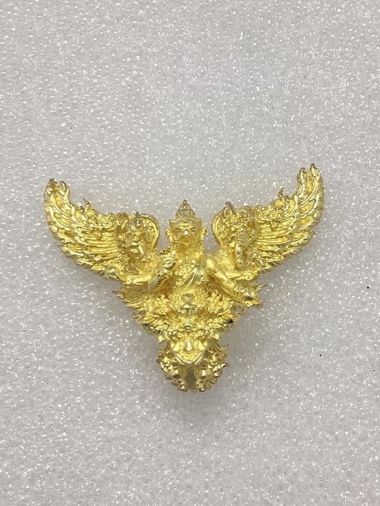 พญาครุฑมังรายศาสตร์ เศรษฐีอนันตทรัพย์ พระอาจารย์วิรุต วัดสันมะเหม้า จ.เชียงราย เนื้อสัมฤทธิ์ชุบทองขัดเงาบางส่วน พิมพ์เล็ก สูง 3 ซ.ม. กล่องเดิม |