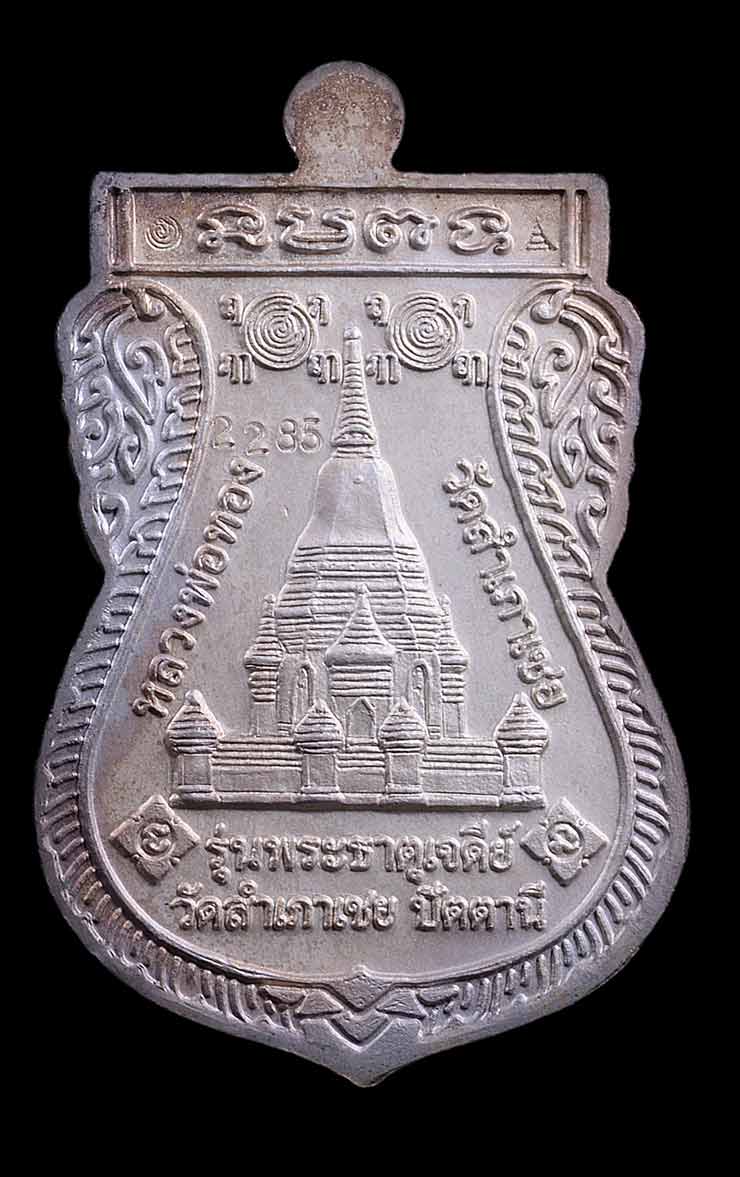 -เหรียญหลวงปู่ทวด อาจารย์ทอง วัดสำเภาเชย พิมพ์พุทธซ้อน รุ่นพระธาตุเจดีย์ เนื้อเงินลงยาลายธงชาติ ปี 2549 จ.ปัตตานี