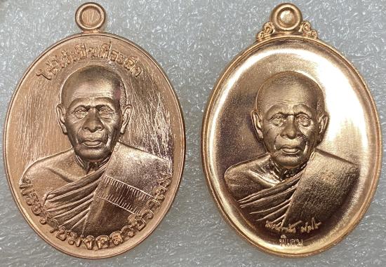 หลวงปู่แผ้ว ปวโร วัดรางหมัน เหรียญรุ่น สยบภัย,ลายเซ็นต์อายุยืน (เนื้อทองเเดง 2 เหรียญ) |