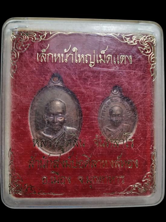 เหรียญเล็กหน้าใหญ่ + เหรียญเม็ดแตง หลวงปู่หลิน จันทสาโร สำนักสงฆ์บ่อศิลาหงส์ทอง จ.มุกดาหาร ปี๒๕๖๒ เนื้อทองแดง(ผิวไฟ) ตอกโค้ด หมายเลขชัดเจน สภาพสวยไม่ผ่านการใช้ มาพร้องกล่องเดิม รับประกันแท้และตามกฎ g-pra |