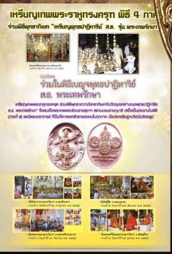 ในการสร้างวัตถุมงคลในครั้งนี้ ได้ประกอบพิธีอันศักดิ์สิทธิ์ ได้ประกอบพิธีอันเป็นมหามงคลประวัติศาสตร์ ณ วัดพระศรีมหาธาตุ บางเขน ตั้งแต่วันที่ 22 พฤษภาคม โดยมีพระเถราจารย์นั่งปรกอธิษฐานจิต ณ พระอุโบสถ วัดพระศรีมหาธาตุ บางเขน คือ ท่านเจ้าพระคุณพระราชปัญญาโมลี เจ้าคณะจังหวัดลำพูน ผู้ช่วยเจ้าอาวาสพระธาตุหริภุญชัย , พระครูพิศาลจริยาภิรม พระมหาสุรศักดิ์ วัดประดู่ จังหวัดสมุทรสงคราม , พระครูสุวิมลธรรมรักษ์ เจ้าอาวาสวัดลอยเคราะห์ จังหวัดเชียงใหม่ , พระครูบุญญาภินันท์ อาจารย์หรีด วัดป่าโมกข์ จังหวัดพังงา , พระอาจารย์ประสูติ ปิยธัมโม วัดถ้ำพระพุทธโกษีย์ (ในเตา) อ.พระยอด จ.ตรัง โดยมี เจ้าพระคุณพระเทพภาวนาวิกรม เป็นประธานจุดเทียนชัย และเป็นประธานนั่งปรกอธิษฐาน ณ พระอุโบสถ วัดพระศรีมหาธาตุ บางเขน มีพระพิธีธรรมจากวัดสุทัศน์เทพวราราม 4 รูป สวดพระคาถาพุทธาเทวามังคลาภิเษก ประมาณ 3 ชั่วโมง