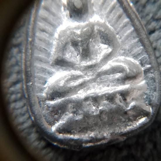 พระกลีบบัวหลวงพ่อคง พิมพ์ ว.บ.ส. วัดบ้านสวน เนื้อเงินยวงผสมดีบุก |