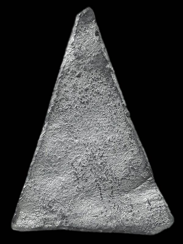 - เนื้อชินตะกั่ว ตอกโค๊ตที่ข้างแขนขวา ขนาดฐานกว้างประมาณ 2.5 cm. x สูง 3.5 cm.