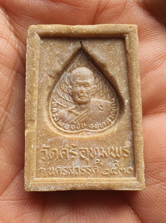 สมเด็จหลังรูปเหมือนใบโพธิ์ หลวงพ่อจ้อย วัดศรีอุทุมพร ปี 2530 เนื้อผงน้ำมัน |