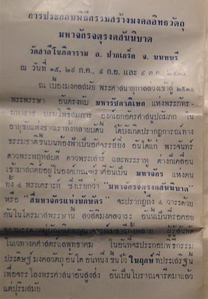 จากพิธีมหาจักร 4 วาระ ดังกล่าวมาแล้วข้างต้น จึงเป็นการยากที่จะมีพิธีพุทธาภิเษกที่ยิ่งใหญ่แบบนี้ได้อีกในสองสามชั่วอายุของเรานี้ ตลอดจนโลหะที่นำมาสร้างก็ผ่านการจารแผ่นโลหะอย่างเพียรพยายามยากที่สำนักใดจะทำได้เหมือน (ต่างจาก หลายๆ สำนักที่ปั้มขึ้นจากแผ่นทองแดงธรรมดาๆ)