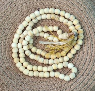 สร้อยประคำเนื้อกรามช้างยาวประมาณ14นิ้วสวมคอได้สบาย เม็ดใหญ่สภาพดีมากผ่านการใช่มาขาวอมเหลือง
