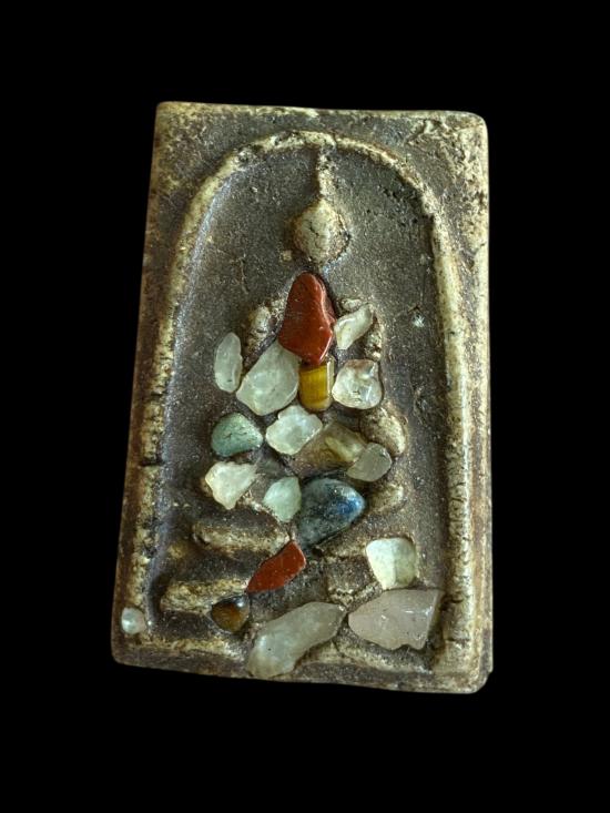 พระสมเด็จเนื้อผงฝังพลอยโบราณ องค์นี้เป็นงานมวลสารเก่าแท้ ดูผิวธรรมชาติแบบไม่ล้าง ไม่แต่ง