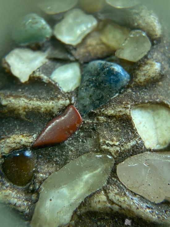 มวลสารฝังแน่นทั้งเม็ดพลอยแดงเขียวเหลือง พร้อมเม็ดแร่เก่า ช่วยบอกอายุโดยรวมได้ดี