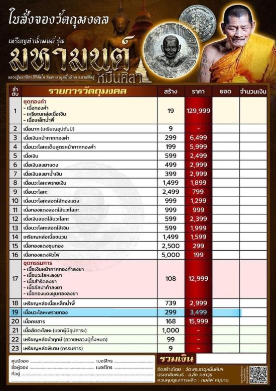 เหรียญ มหามนต์ หมื่นศิลา อายุวัฒนะมงคล๗๙ปี หลวงปู่มหาศิลา หลวงปู่ศิลา สิริจันโท ธรรมอุทยาน วัดพระธาตุหมื่นหิน จ.กาฬสินธุ์ เนื้อนวะโลหะพรายทอง เลข ๒๔๓ มีกล่องเดิม ราคาจอง 3499 บาท |