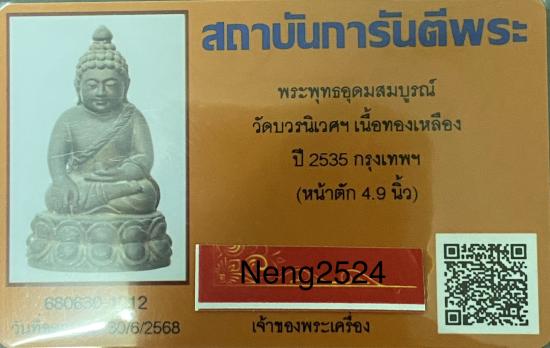 Rare items พระพุทธอุดมสมบูรณ์ วัดบวรนิเวศน์ เนื้อทองเหลือง ปี 2535 กทม + บัตร G Pra |