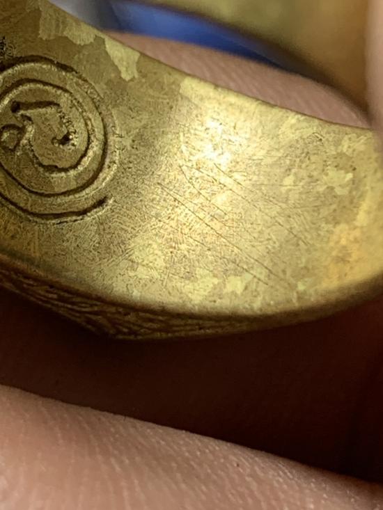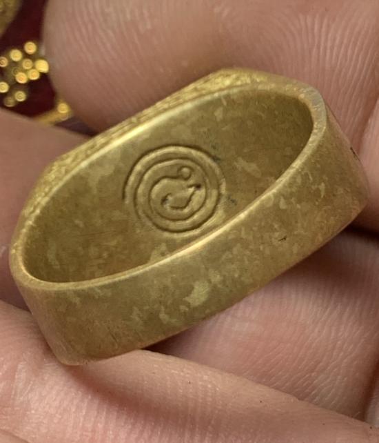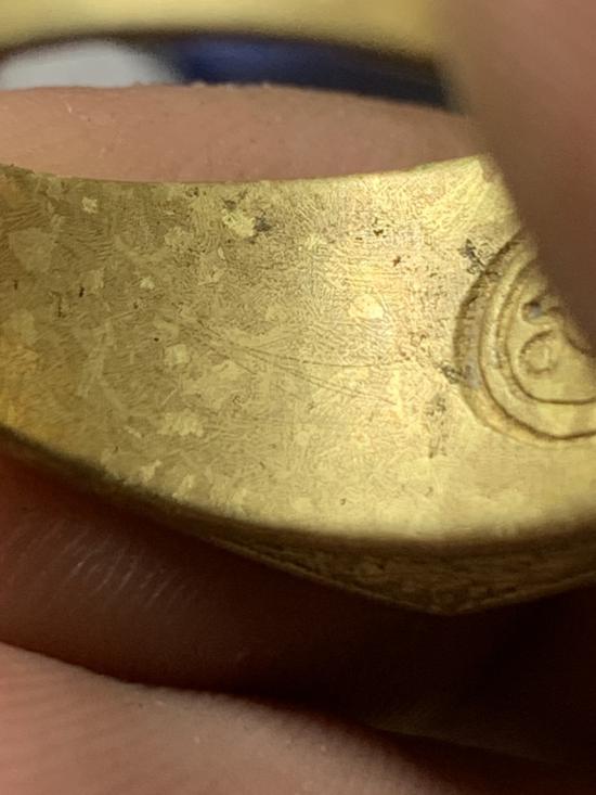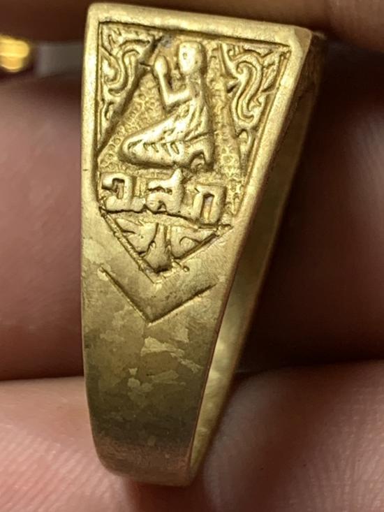 แหวนพระพุทธเนื้อโลหะ มีจาร ไม่ทราบที่ครับ |