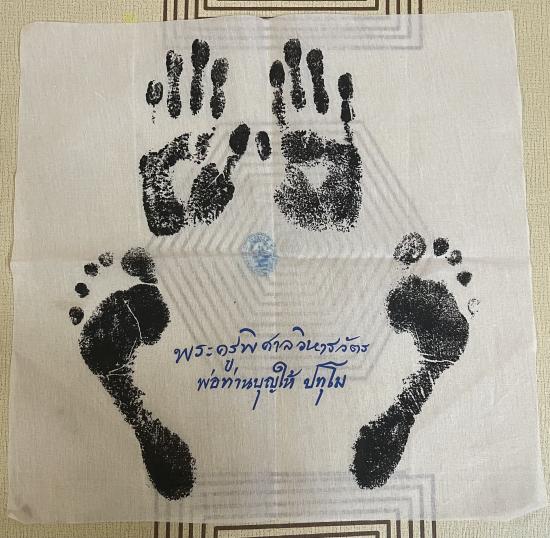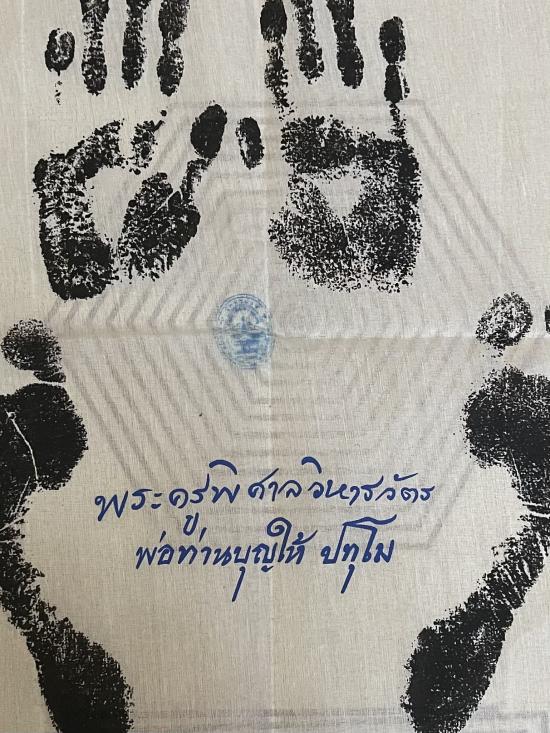 ผ้ายันต์ สกรีน รอยมือ รอยเท้า พ่อท่านบุญให้ วัดท่าม่วง |