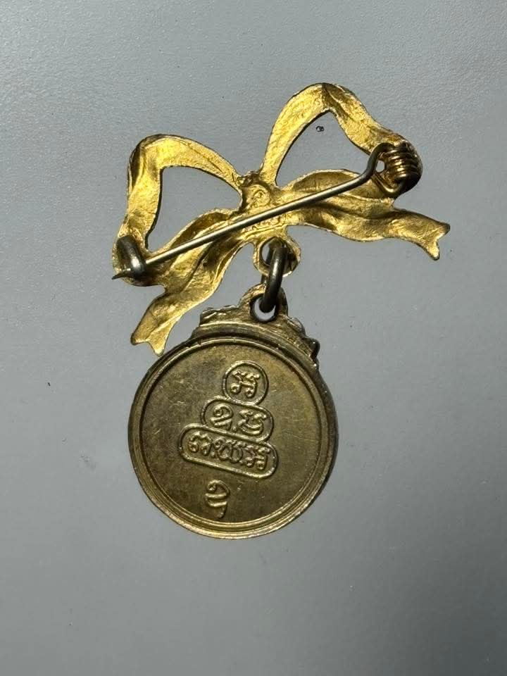 เหรียญกลมเล็ก ท่านเจ้าคุณนรฯ พร้อมโบว์เข็มกลัด หลังยันต์น้ำเต้า |