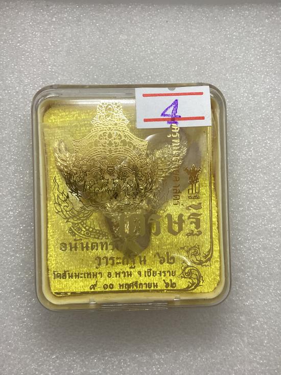 พญาครุฑมังรายศาสตร์ เศรษฐีอนันตทรัพย์ พระอาจารย์วิรุต วัดสันมะเหม้า จ.เชียงราย เนื้อสัมฤทธิ์ชุบทองขัดเงาบางส่วน พิมพ์เล็ก สูง 3 ซ.ม. กล่องเดิม |