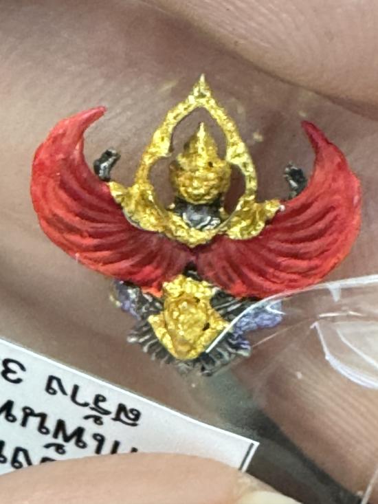 พญาครุฑ หลวงปู่จื่อ วัดเขาตาเงาะ ชัยภูมิ เนื้อไวท์บรอนซซาตินเครื่องทรงทองปีกเพ้นท์แดงส้ม หมายเลข 7 สร้างจำนวน 39 องค์ ซีนเดิมกล่องเดิม |