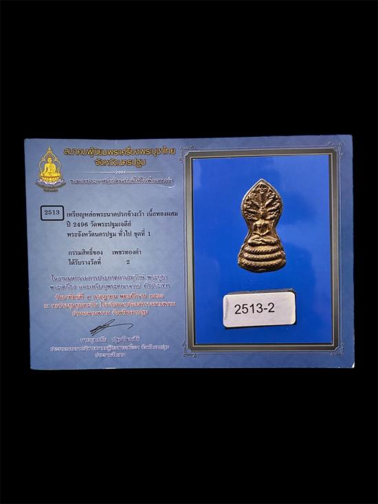 เหรียญหล่อพระนาคปรกข้างเว้า เนื้อทองผสม ปี 2496 วัดพระปฐมเจดย์ การรันตรีความสวยด้วยรางวัลที่ 2 งานนายร้อยสามพราน งานใหญ่ของประเทศ มาพร้อมใบประกาศ สายพระสวยไม่ควรพลาดครับ