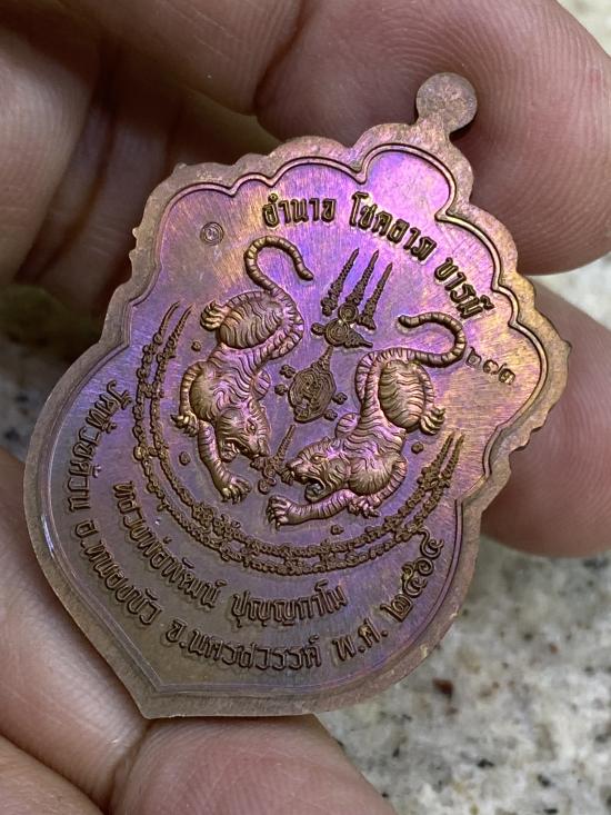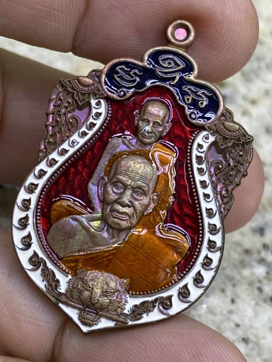 หลวงพ่อพัฒน์ ปุญญกาโม เสือคาบดาบ 3 สวย เนื้อสัมฤทธิ์เลข 273 กล่องเหรียญสมบูรณ์ จมูกสมบูรณ์ สีลงยา