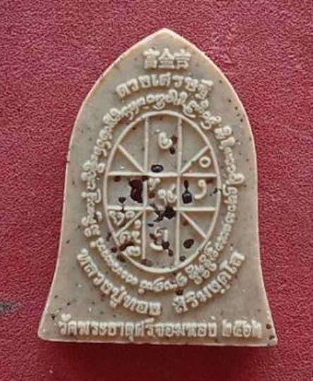 พระผงซุ้มระฆังดวงเศรษฐี ลป.ทอง สิริมังคโล เนื้อผงว่านฝังพลอยกินบ่อเสี้ยง(กินไม่หมด) วัดพระธาตุศรีจอมทอง ปี 2562