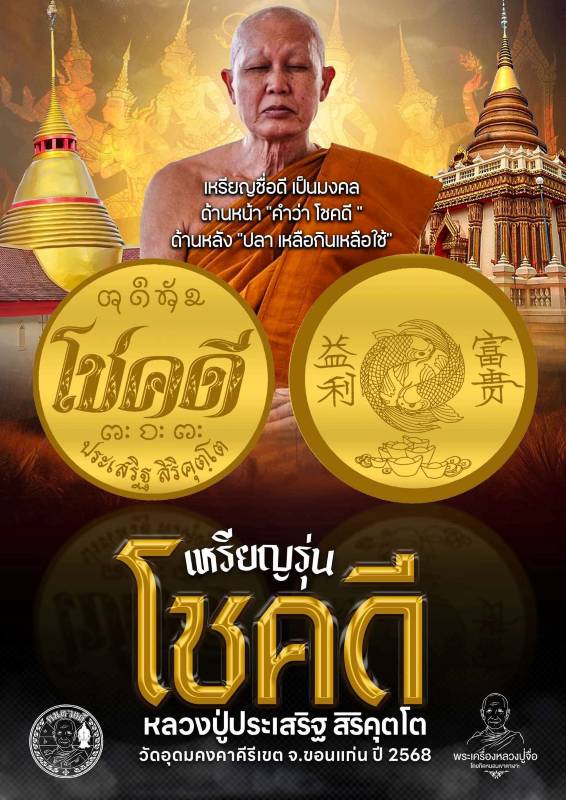 วัดใจ..เหรียญโชคดี หลวงปู่ประเสริฐ วัดอุดมคงคาคีรีเขต ขอนแก่น ปี 2568 เนื้อทองไหล ลงยาเขียว วันพุธ เลข 25 |