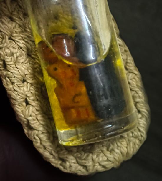 รักยมหลวงพ่อจง วัดหน้าต่างนอก จ.อยุธยา ขวดยานัด จุกไม้เก่าพร้อมถุงเชือกเก่าถัก เจ้าของอดีตผู้ว่าราชการจังหวัด (ท่านให้มาวัดใจเพื่อทำบุญฟื้นฟูพื้นที่น้ำท่วม) |