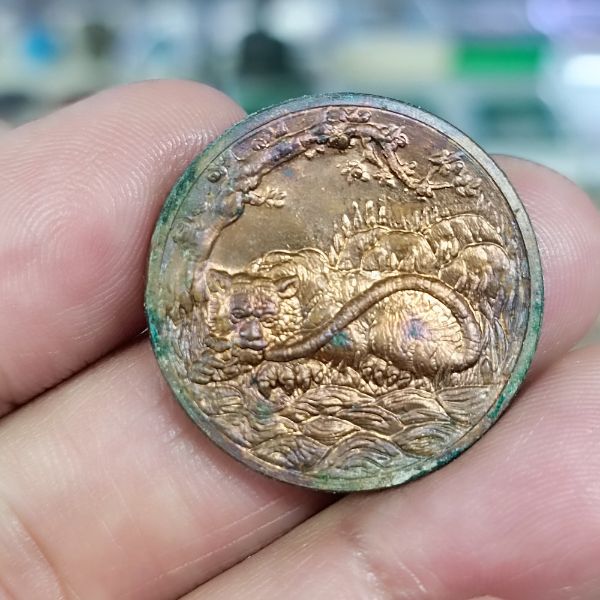 เหรียญ พระอาจารย์ประสูติ วัดในเตา พญาเสือ เฒ่าเสาร์5 พยัคฆ์คาบหาง ปี60 หมายเลข 274 พร้อมกล่องเดิม (คาบเหรียญเกิดจากน้ำมันเสือ) |