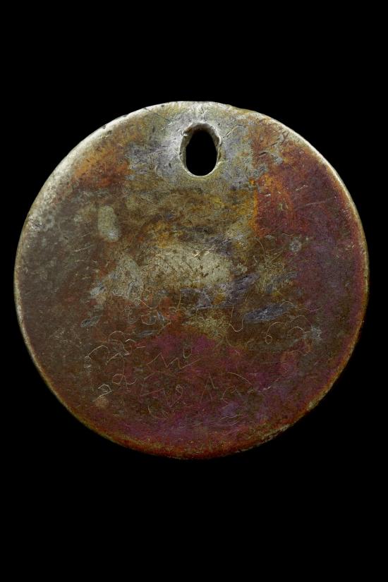 วัดใจ เหรียญรัชกาล พระจุลมงกุฏ - พระแสงจักร เจาะรู มีลงจารยันต์ด้านหลัง หลวงปู่ภู วัดท่าฬ่อ จ. พิจิตร |