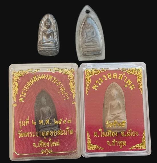 ในประเทศไทยนี้ ที่พระพุทธศาสนา และแนวการปฏิบัติธรรมรุ่งเรืองขึ้นมาในทุกภาค ก็เพราะพระธุดงค์ในสายของ หลวงปู่เสาร์ กันตสีโล และ หลวงปู่มั่น ภูริทัตโต + เลี่ยมมาเก่าสวยๆเลยครับ พระรอด คุ้มภัย วัดหนองเกิด ต.ท่าตุ้ม อ.ป่าซาง จ.ลำพูนเนื้อโลหะ (ชิน) หลังโค๊ตบุญค้ำ พระอาจารย์บุญค้ำ สิรินฺธโร เจ้าอาวาสวัดหนองเกิด อ.ป่าซาง จ.ลำพูน ปลุกเสกพิธีใหญ่ครับ + พระรอด ผสมผงพระธาตุเก่า วัดดอยสะเก็ด จังหวัดเชียงใหม่ รุ่น 2 ปี พ.ศ.2547 บูชาพร้อมกล่องเดิม จากทางวัด + พระรอด วัดช้างสี เนื้อดิน กล่องเดิมสวยๆครับ วัดช้างสีเป็นวัดภายในเขตคูเมือง ตั้งอยู่ทางด้านเหนือของเมืองใกล้ประตูช้างสี บนถนนอินทยงยศ ซึ่งมีสถานที่อย่าง วัดพระธาตุหริภุญชัยวรมหาวิหาร จวนผู้ว่าราชการจังหวัด ศาลากลางประจำจังหวัด พิพิธภัณฑสถานแห่งชาติ หริภุญไชย สันนิษฐานว่าวัดช้างสีสร้างในราว พ.ศ. 1250 โดยพระนางจามเทวี เมื่อเสร็จจากศึกต้านขุนหลวงมิลังคะวัดได้รับพระราชทานวิสุงคามสีมาเมื่อ พ.ศ. 2511