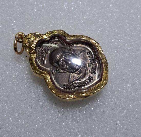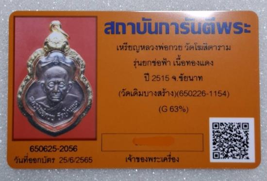 ***เหรียญเดิมบาง หลวงพ่อกวย รุ่นยกช่อฟ้า เนื้อทองแดง พิมพ์นิยม หูขีดไหล่จุด ปี15 สวยๆ เลี่ยมทอง พร้อม บัตรรับรอง*** |