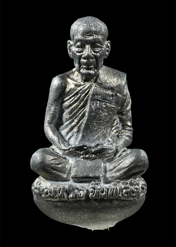 รูปหล่อโบราณเบ้าทุบ รุ่นแรก หลวงพ่อทรง ฉนทฺโสภี วัดศาลาดิน จ.อ่างทอง พ.ศ.2550 เนื้อตะกั่ว ตอกโค๊ต ตอกเลข พร้อมกล่องเดิม |